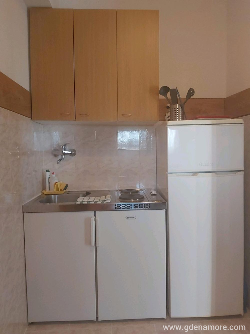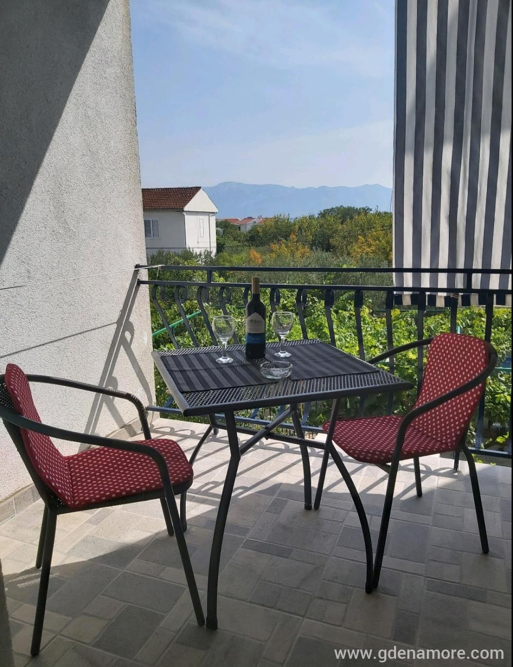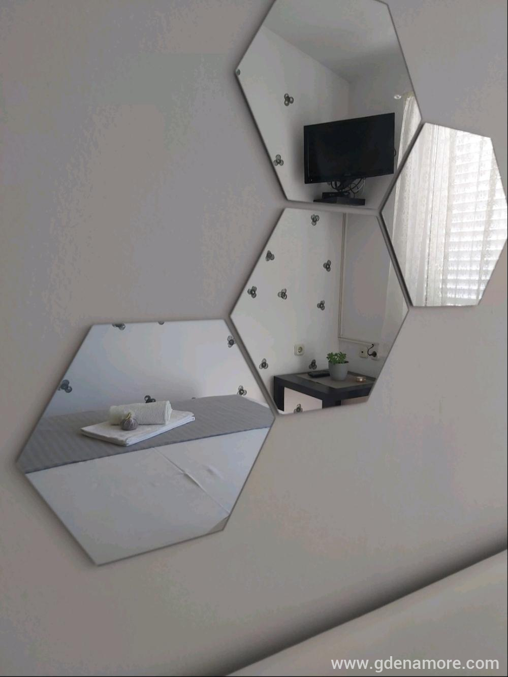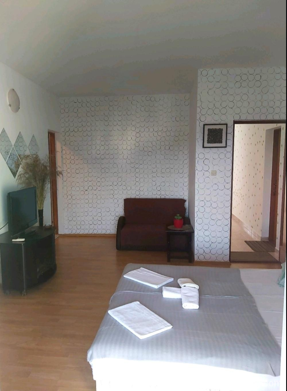 Pojedinacno ili grupno. Kapacitet smestaja 4 apartmana i 2 sobe (max. 14 ljudi), na 2 sprata. Svaki apartman (35-50m2) ima dupli krevet, kupatilo, kuhinju, terasu; sobe imaju dupli krevet, kupatilo, terasu. Klima, tv i wifi dostupni.
